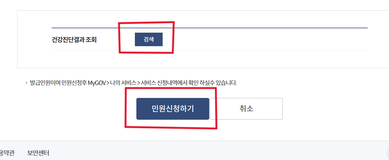 <건강진단결과서(보건증) 발급을 클릭합니다>